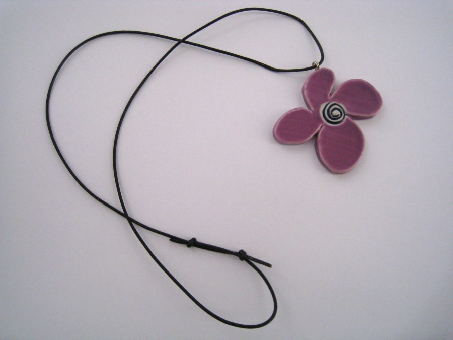 Målfrid Keramikk Lilla Blomstersmykke med reima 2