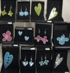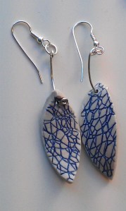 Derfor har jeg også laget noen nye smykker. Jeg viste dem første gang på Blåveismarkedet, og de falt i smak så jeg solgte noen med en gang. Det er jo hyggelig med positiv respons, sjølsagt. Ørepynten Spinn med krakeleringsmønster på begge sider på hengeørepynten og små firkant»knapper» til stikk for den som ønsker det. Tilbehøret er av 925 Sølv.