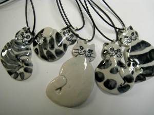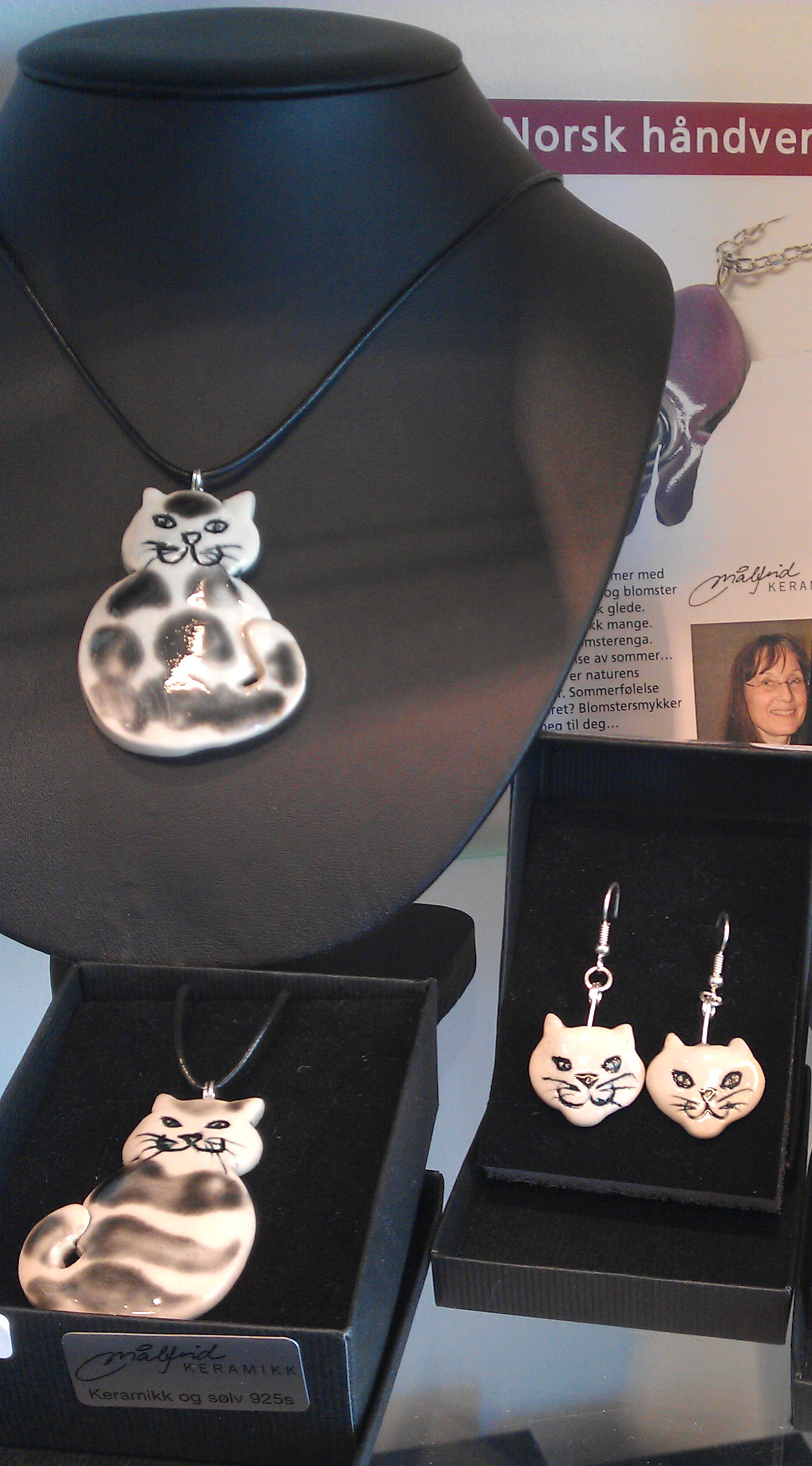 Det er mange som er glad i katter. Fra før lager jeg kattebilder og kattekroker. Nå har jeg føyd til kattesmykker og katteørepynt.
