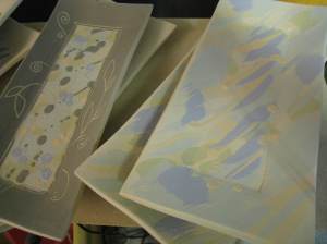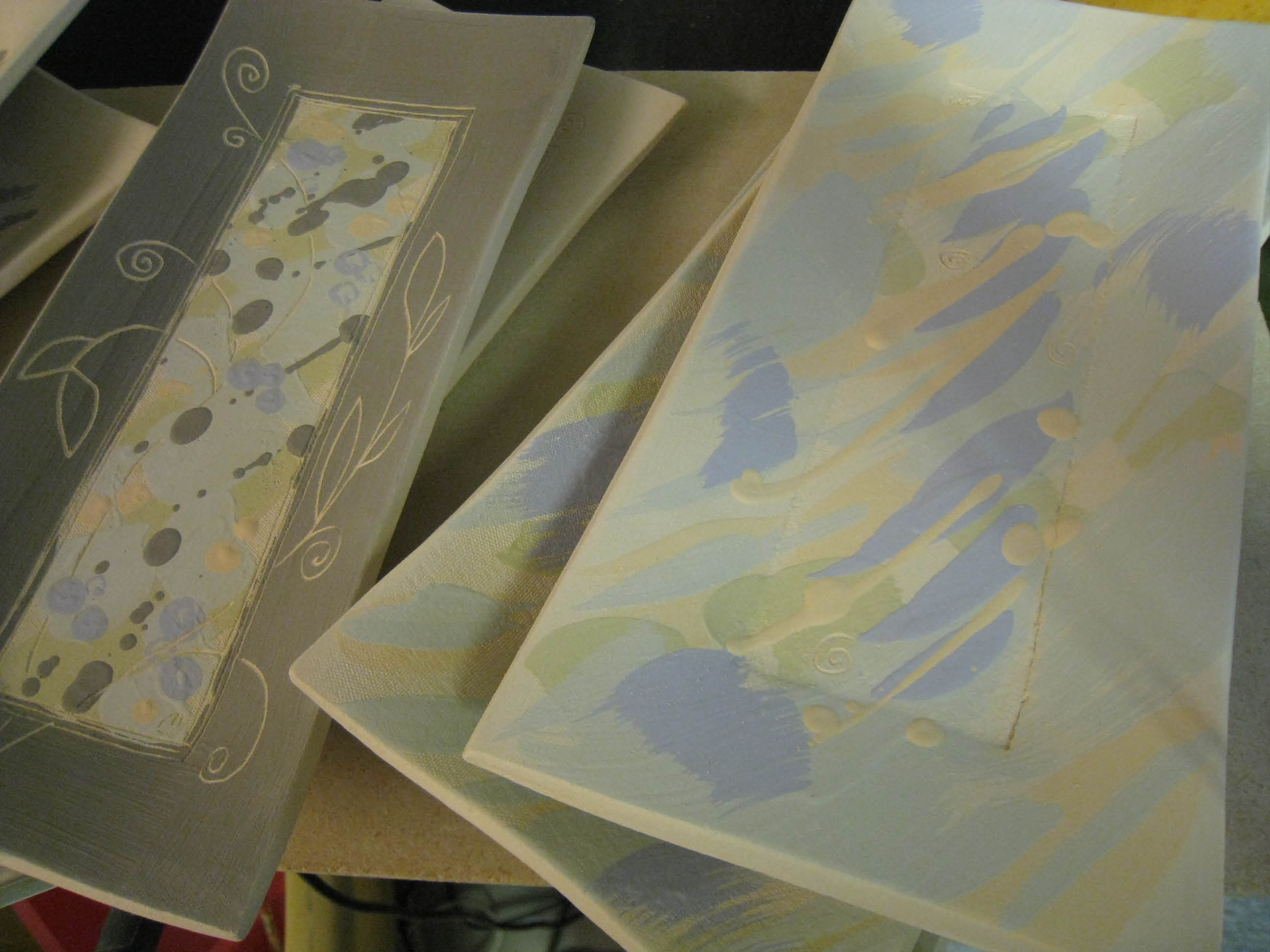 Jeg har laget noen splitter nye unikafat/firkantbilder med stett. De gjør seg veldig godt på veggen,men kan også brukes som fat. Stetten gjør at de kommer litt ut fra veggen.